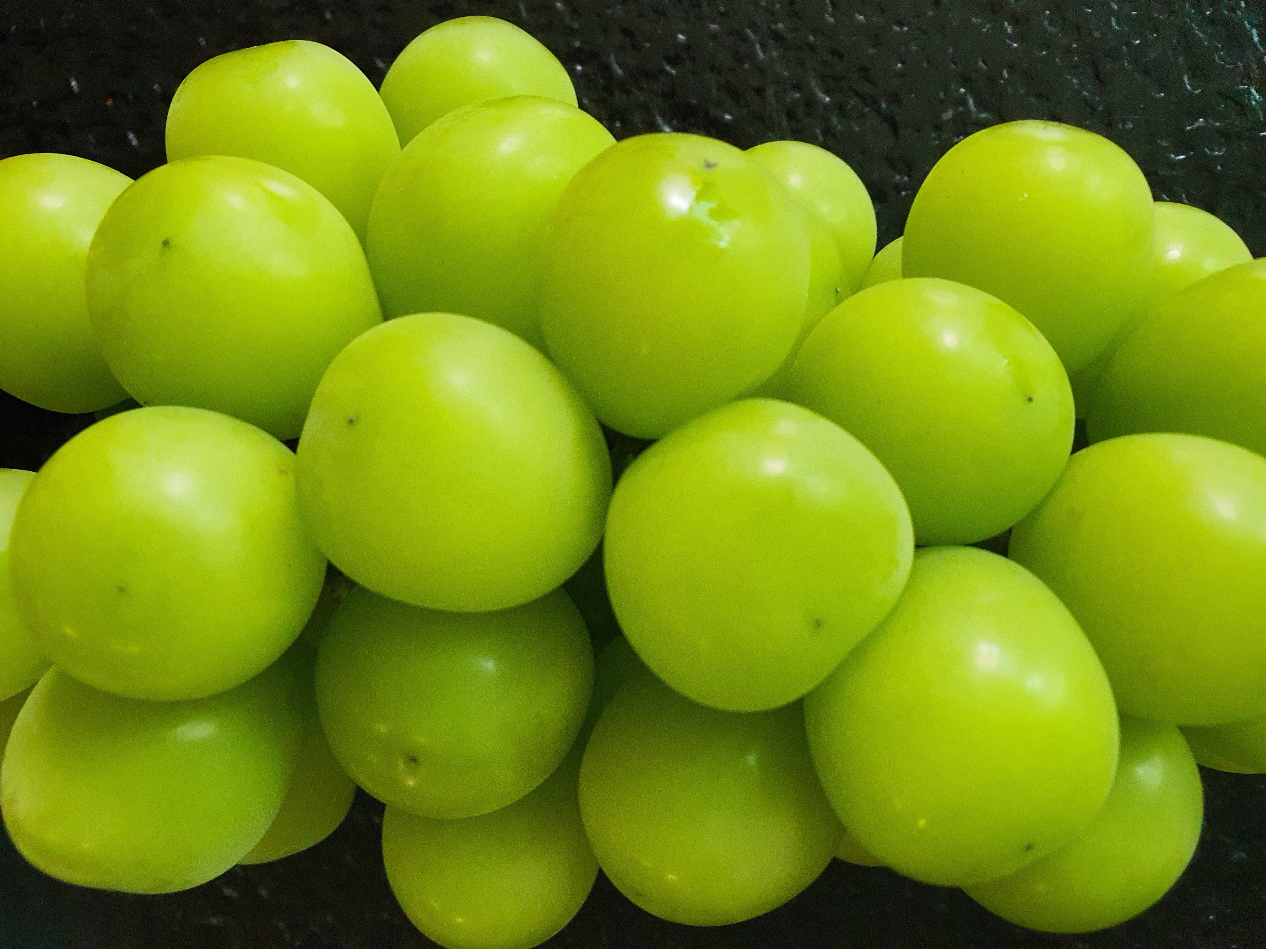 샤인머스캣은 일본에서 만든 청포도 종으로 껍질 채 먹을 수 있는 청포도로 과육은 단단하고 아삭아삭한 식감이 있으며, 즙이 많고 유럽 포도에서 맡을 수 있는 머스캣 향이 강하여 씹을 수록 망고와 같은 향이 납니다.