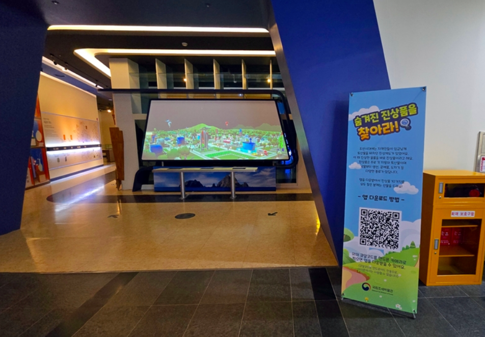 입구에 들어서면 커다란 배너에 적혀있던 숨겨진 10가지 진상품을 찾는 활동이 있습니다. 배너에 있는 QR코드를 통해 앱을 내려받아 진상품을 모두 찾으면 작은 기념풍도 증정한다고 합니다.