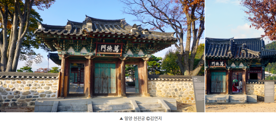 최근 60년 만에 국보의 가치를 인정받아 지정이 예고되기도 했습니다. 특히나 야경이 아름답기로 유명하며, 낮에는 절벽 위에 자리한 탓에 밀양강을 내려다보며 평화로움을 느낄 수 있다고 합니다.