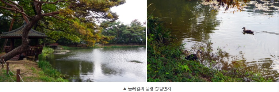 둘레길을 한 바퀴 도는 거리는 약 1km 정도이며, 걷다 보면 위양지의 풍경을 한눈에 담을 수 있는 작은 정자와 물장구치는 오리들을 만날 수 있습니다. 그야말로 자연 속에서 쉼의 시간을 선사합니다.