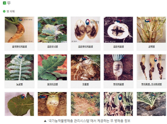 병해충 정보와 방제법을 체계적으로 알 수 있는 시스템의 도움을 받으면 보다 효과적으로 작물을 관리할 수 있을 것입니다. 특히 김장철을 맞이해 예찰과 병해충 관리가 더욱 중요한 시기이니, 적절한 대처와 방제를 한다면 더욱 안정적으로 가을 무와 배추를 얻을 수 있을 것입니다.