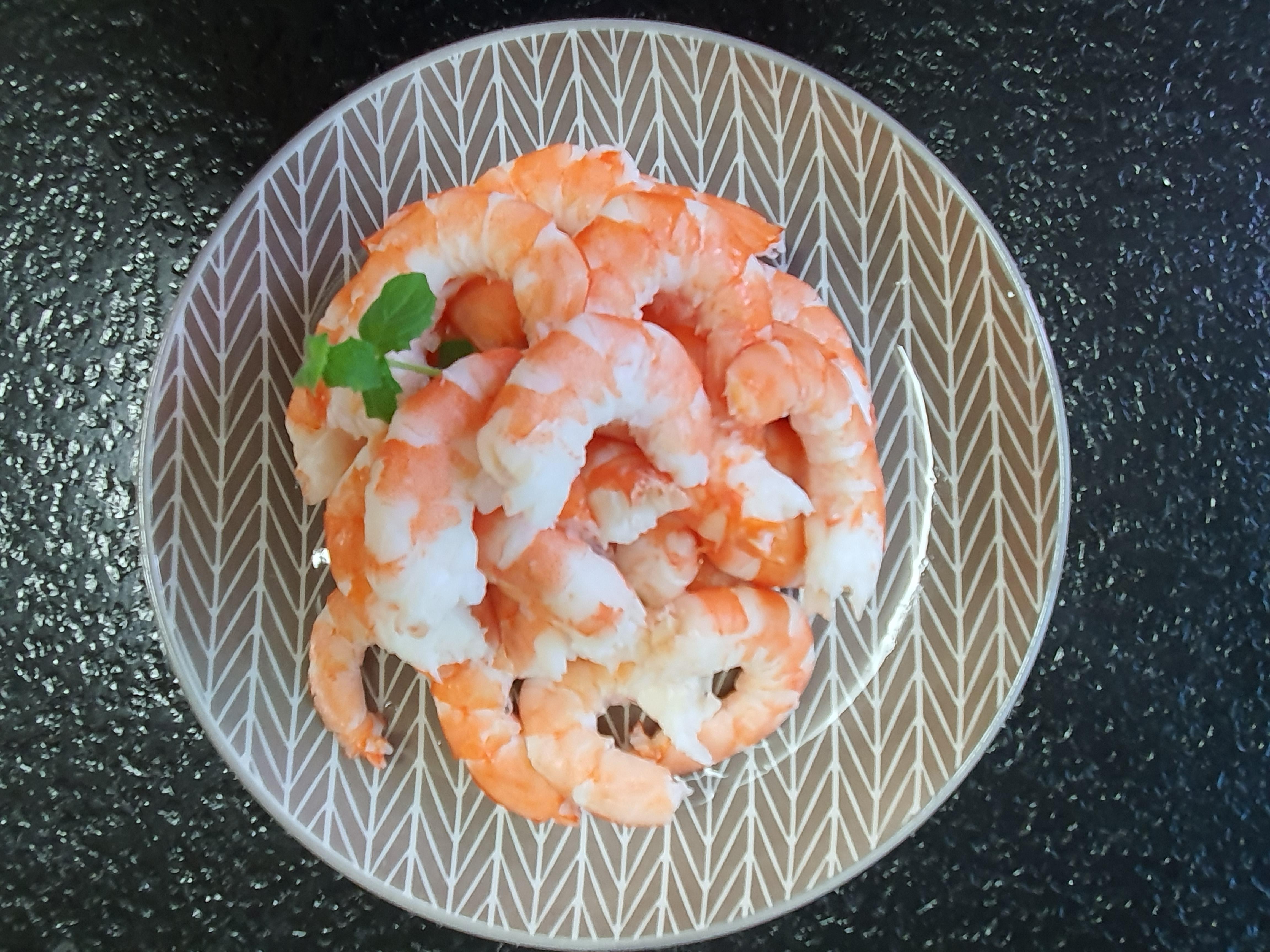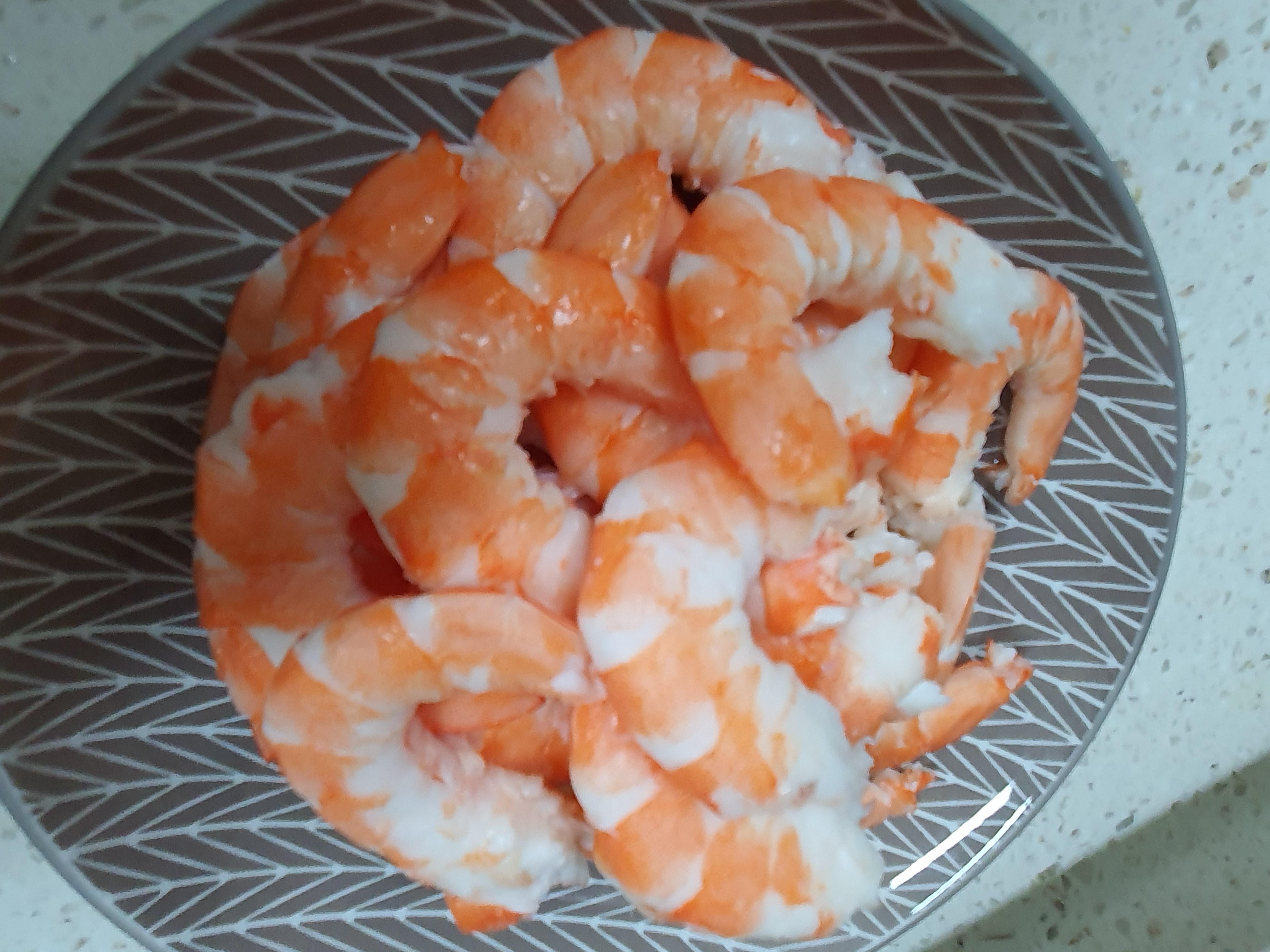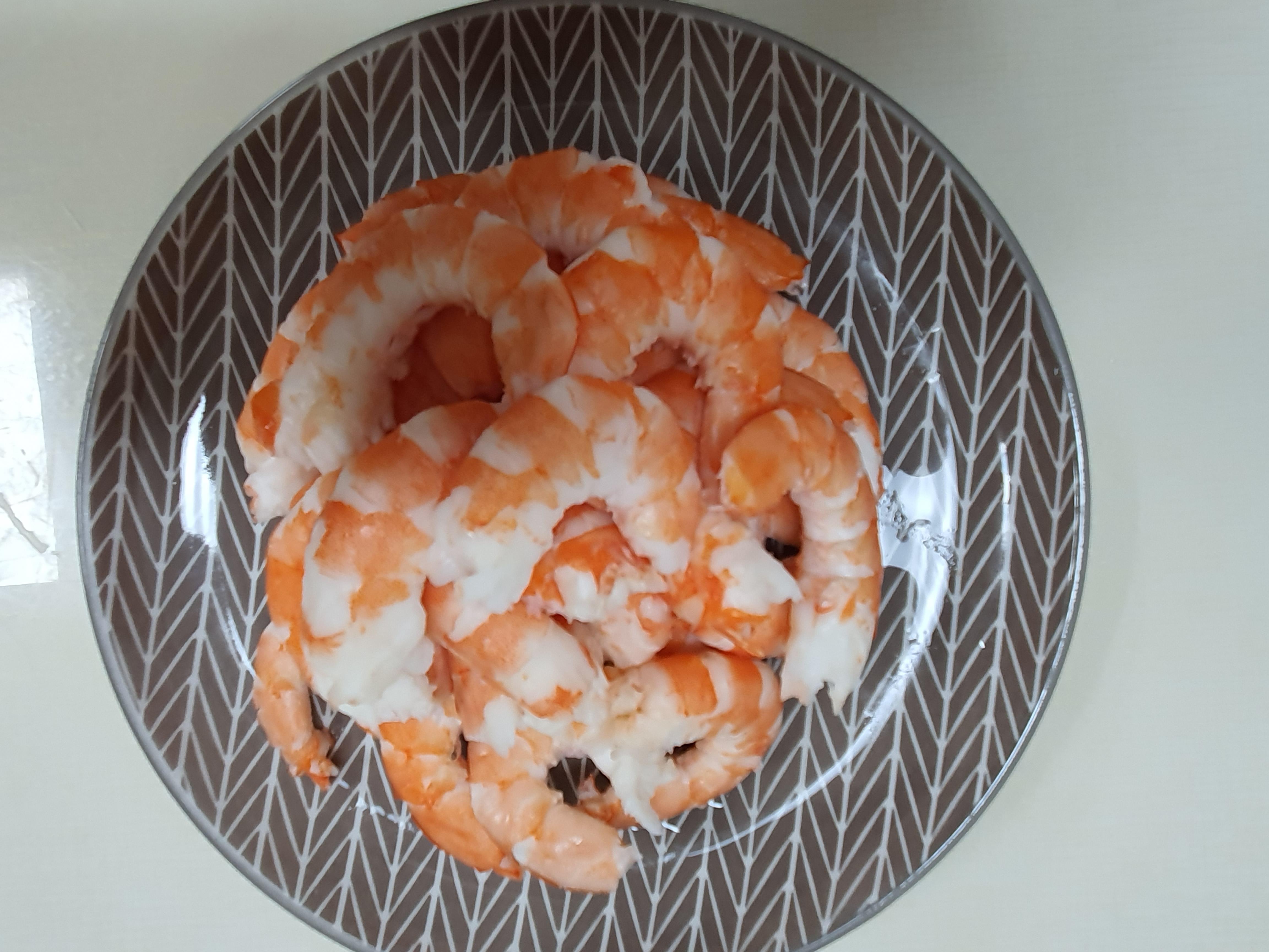 2. 새우의 껍질을 모두 벗겨 놓습니다.