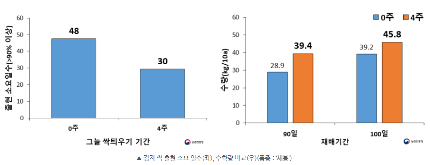 싹 틔운 감자 30일, 싹 안 틔운 감자 48일(18일↓)