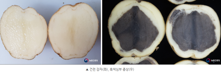 1. 먼저 공급받은 씨감자가 상하거나 흑색심부 증상을 보이는 것은 없는지 꼼꼼히 확인해 줍니다.