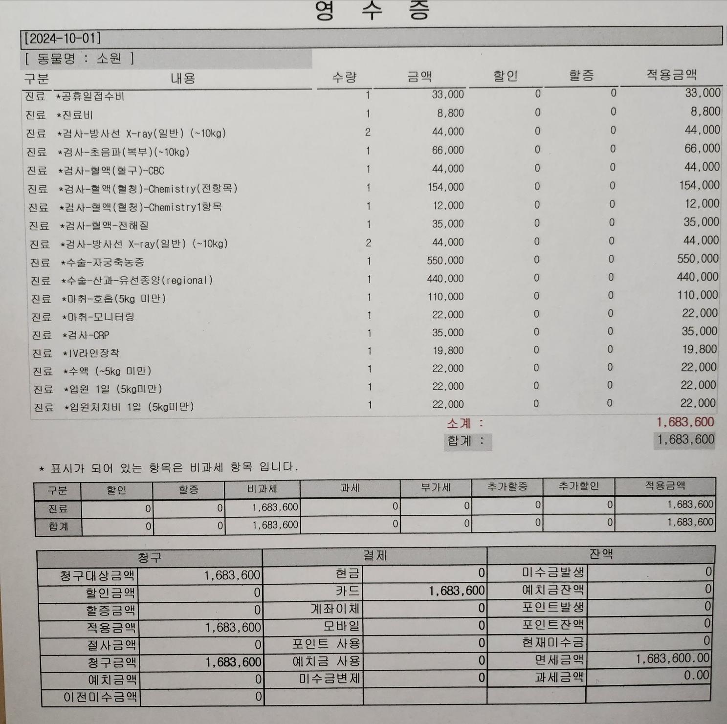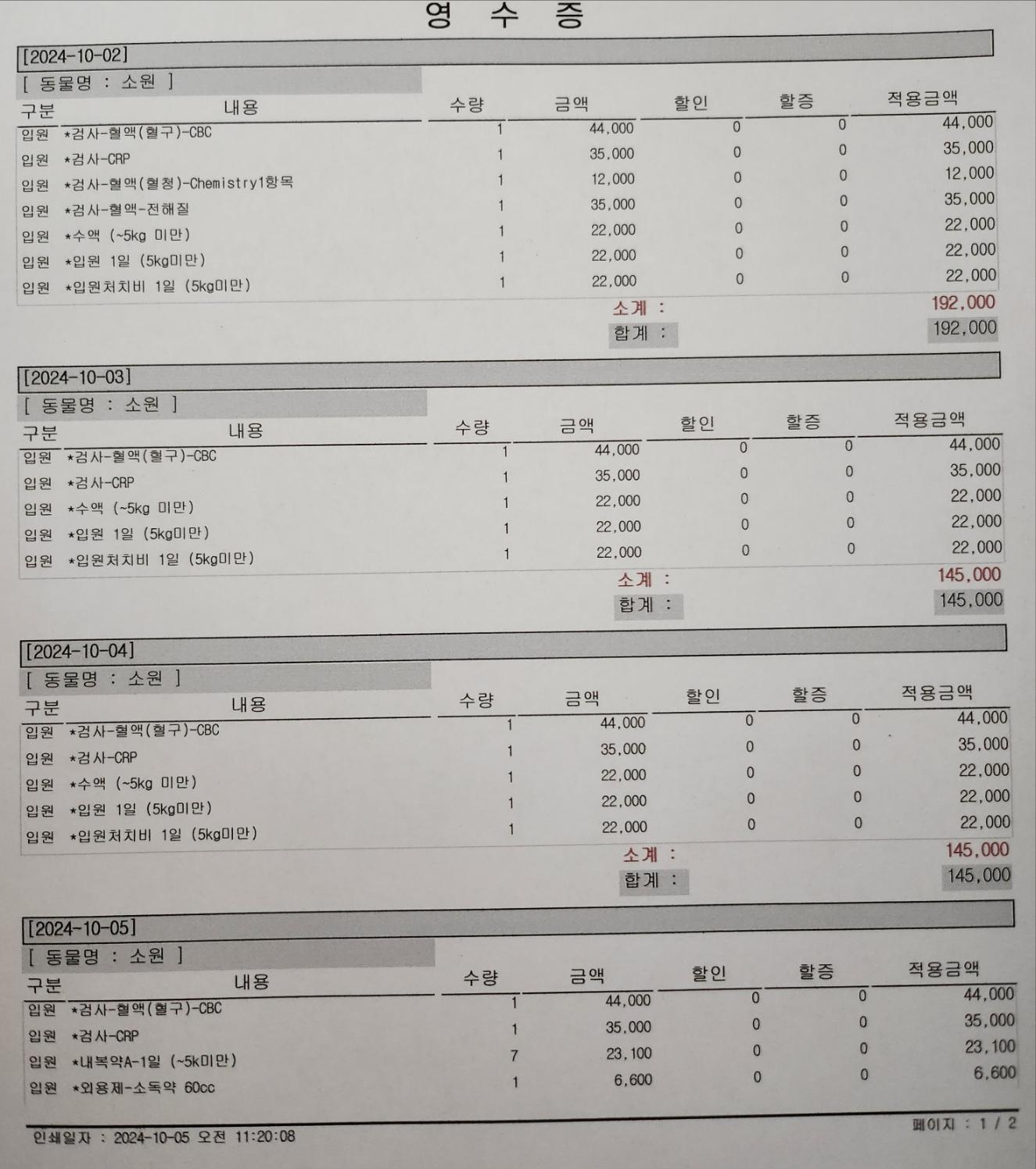 그리고 오늘 병원비 내역서도 함께 공유하겠습니다.