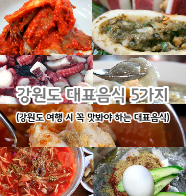 오늘은 강원도에 여행을 간다면 꼭 맛봐야 하는 강원도 대표음식 5가지를 소개해 드리겠습니다.