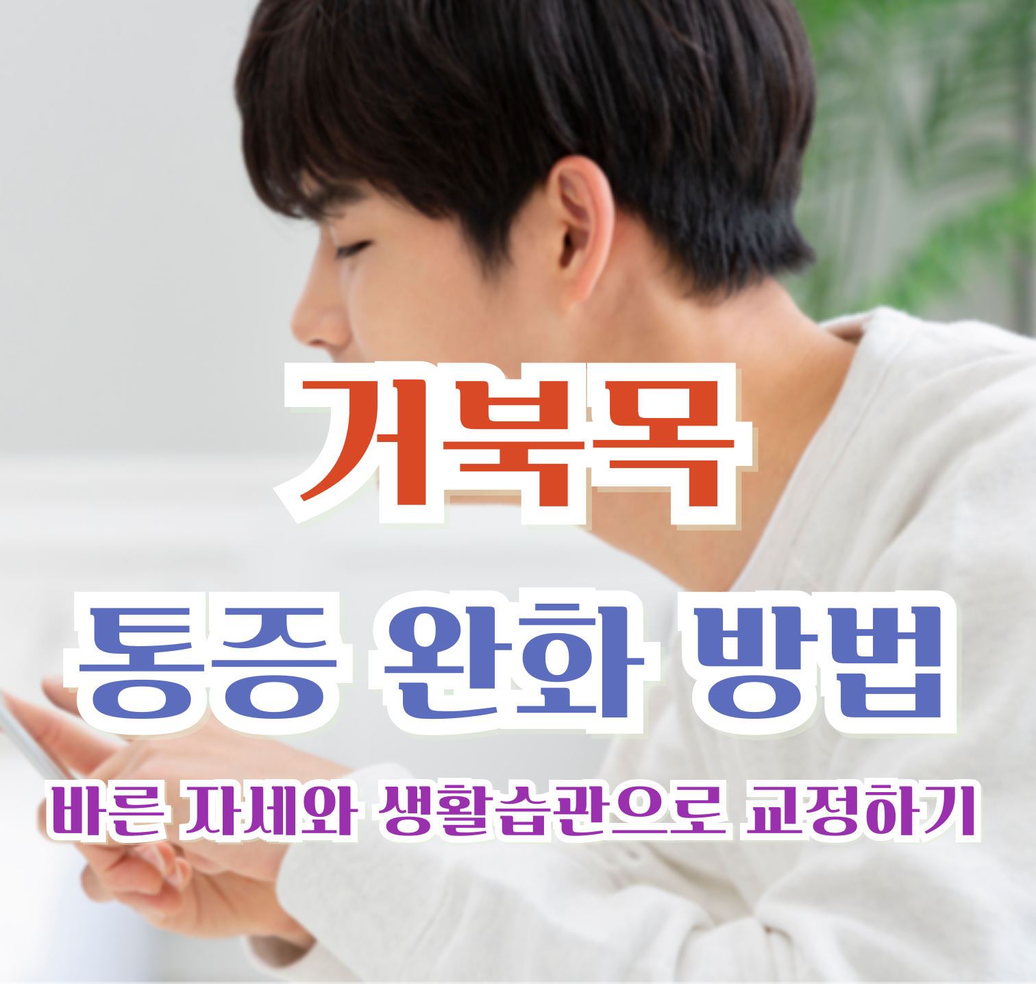 - 목 뒤 근육, 어깨, 등 근육을 강화하면 자세가 자연스럽게 교정됩니다.