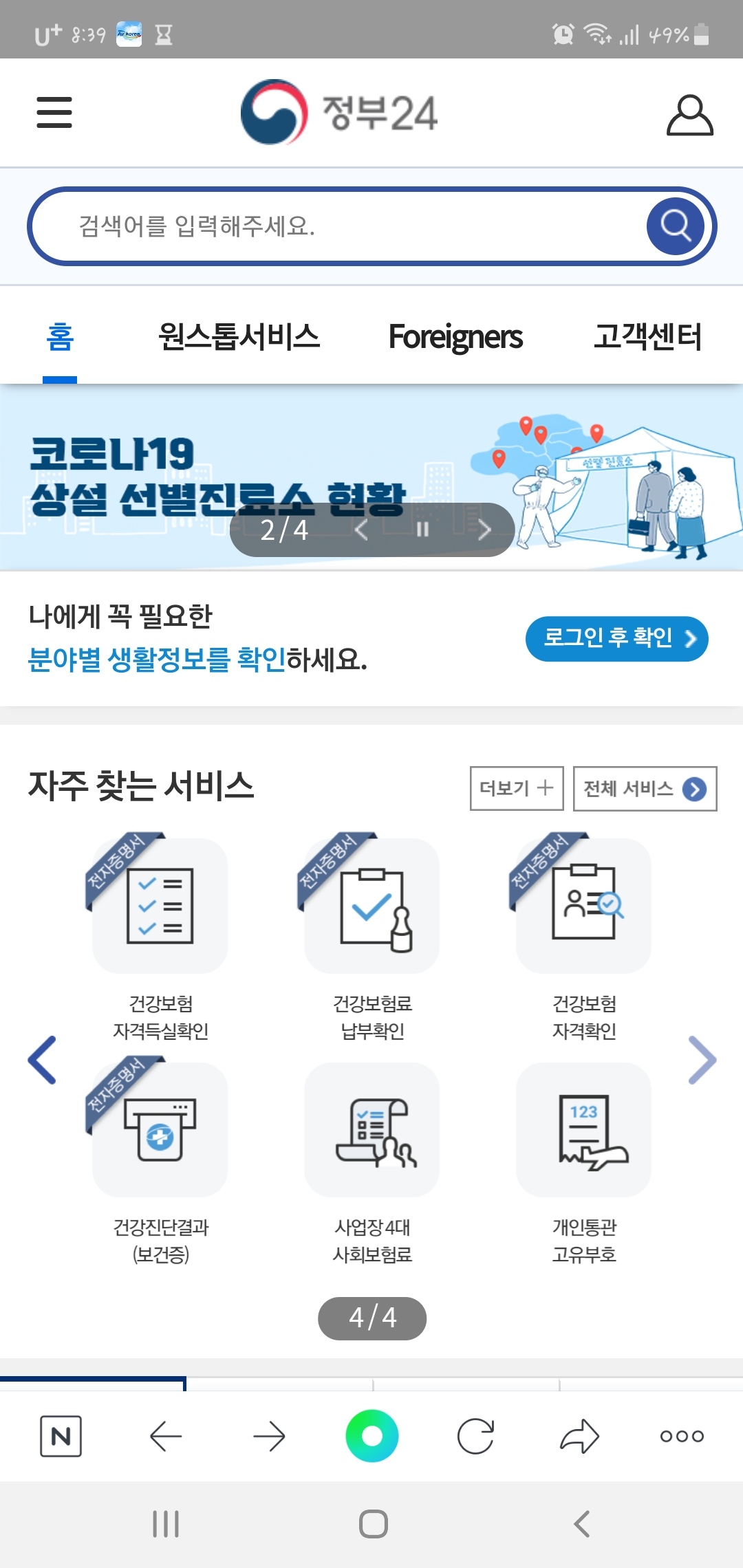 이번에는 정부24가 이닌 공공보건포털로 이동해보겠습니다.
