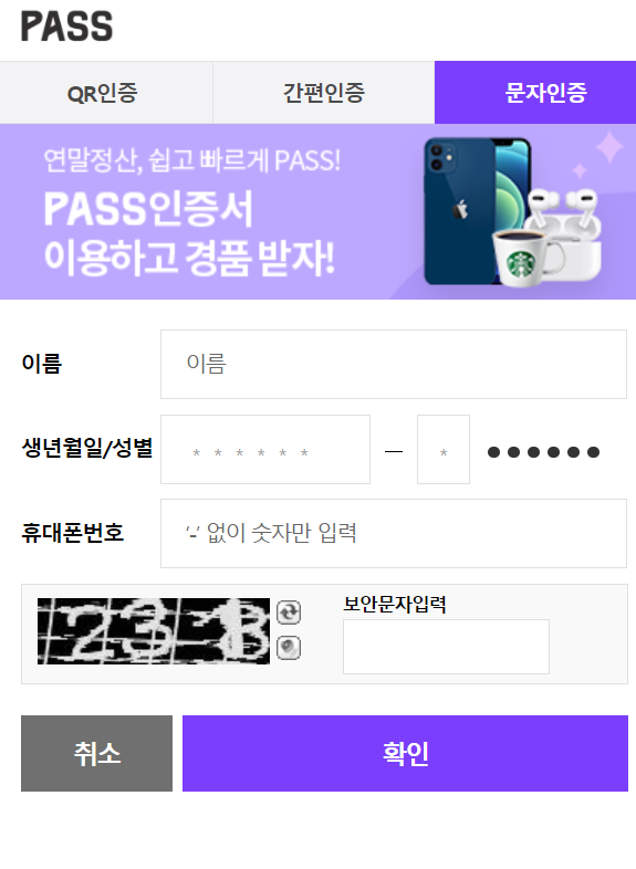 문자인증으로 저는 했답니다.