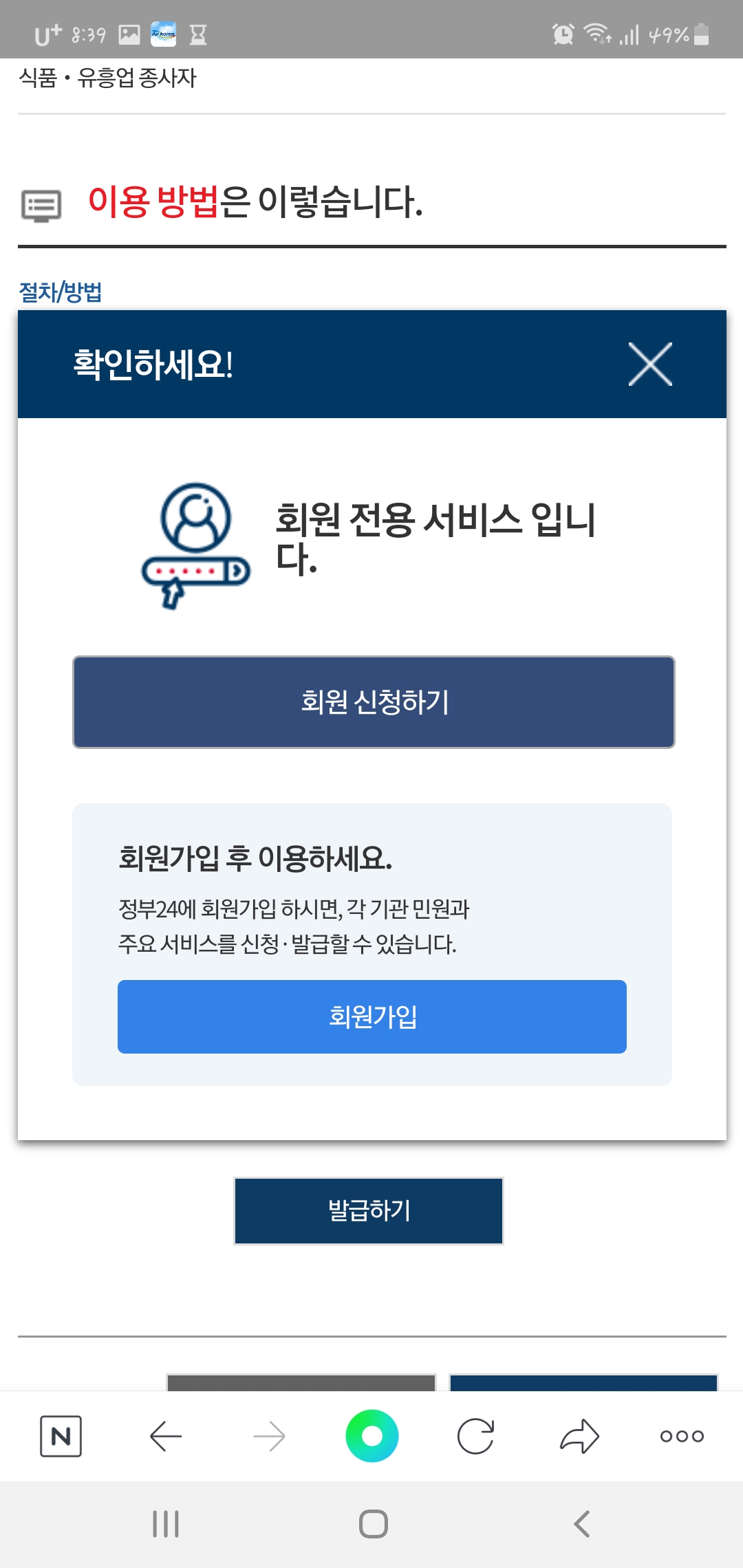 이미 회원가입을 하셨다면 바로 발급하기 버튼을 클릭하시고 그렇지 않다면 회원가입을 하시면 됩니다.