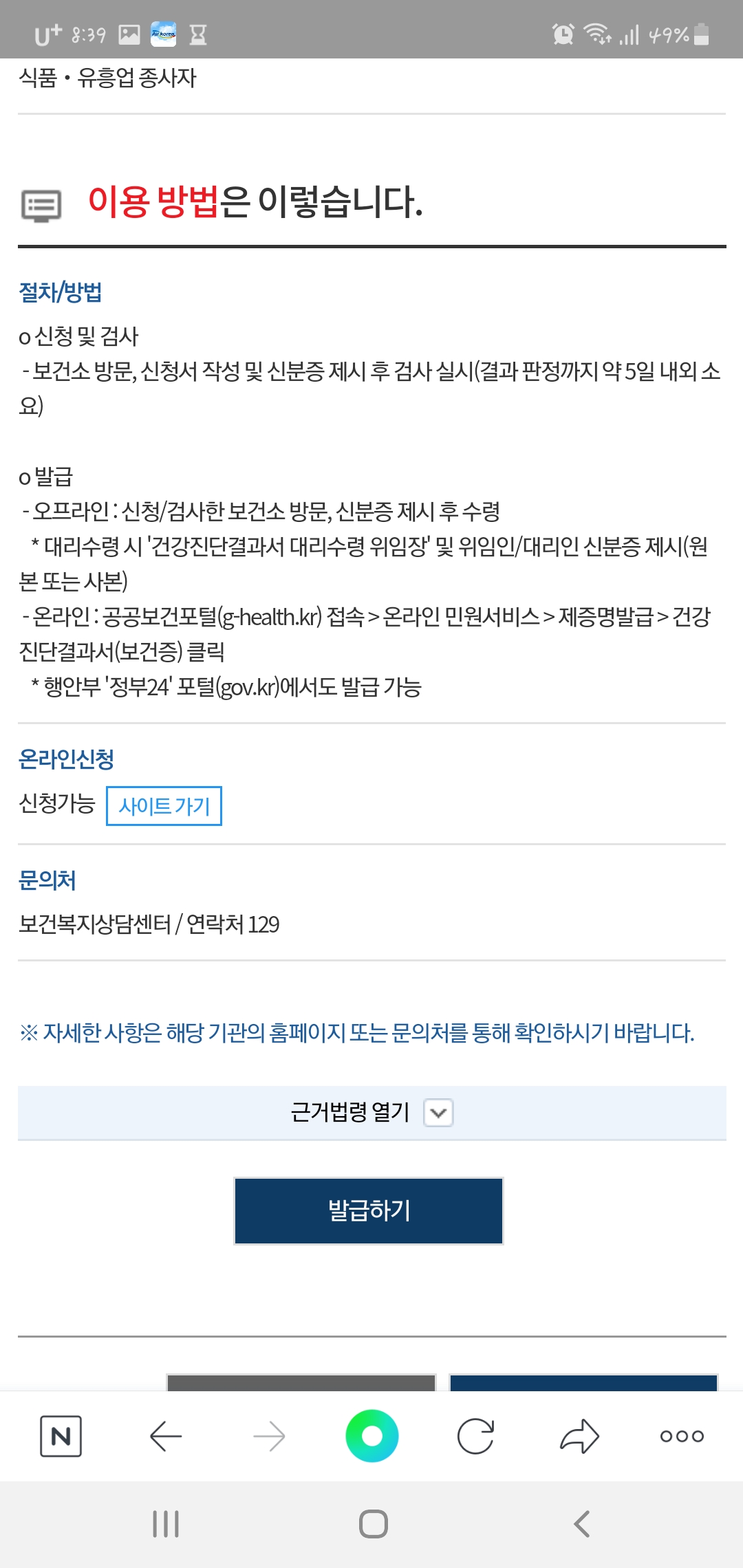 건강진단결과서(보건증)발급 인터넷·모바일 발급 방법