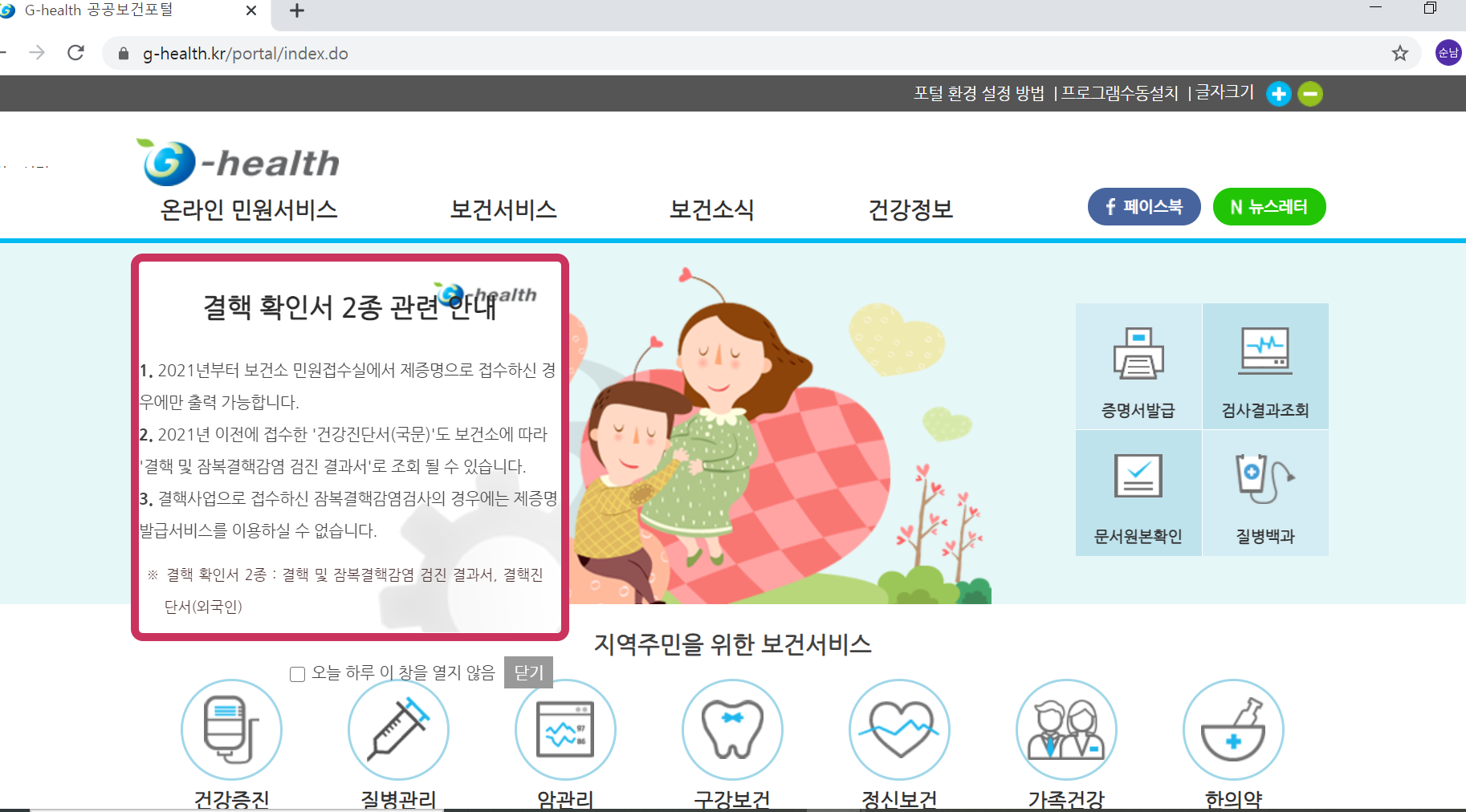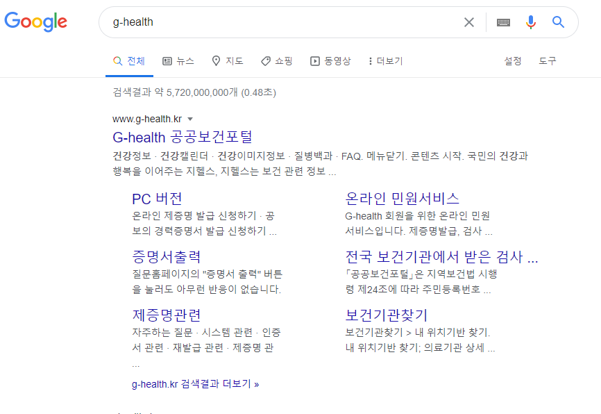 g-health 공공보건포털 바로가기