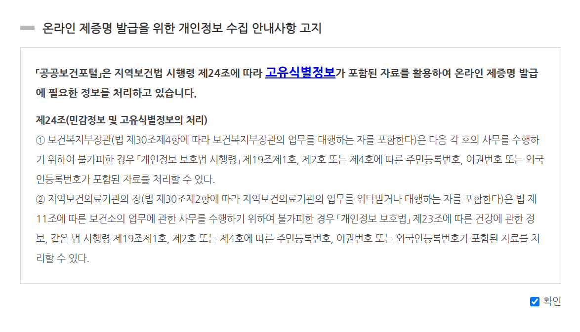 이번에는 정부24가 이닌 공공보건포털로 이동해보겠습니다.