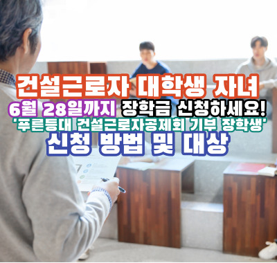 건설근로자 대학생 자녀 6월 28일까지 장학금 신청하세요!
