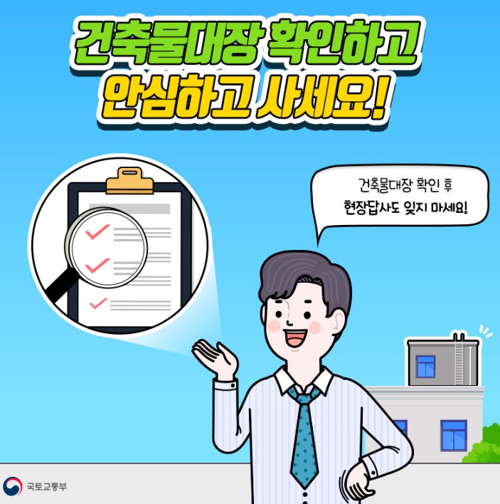 내가 살 곳이라면 다른 사람의 손을 거치지 않고, 내가 직접 알아보고 확인하는 게 좋습니다. 건축물대장을 비롯하여 다양한 건축물에 대한 정보를 공개하고 있는 국토부와 정부24를 적극 활용하여 부동산 첫걸음을 떼어 보는 것도 좋을 것 같습니다.
