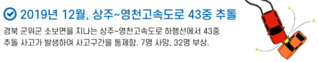 1. 경북 군위군 소보면을 지나는 상주~영천고속도로 하행선 43중 추돌