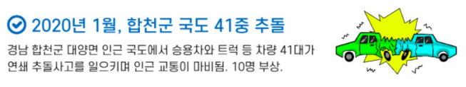 2. 경남 합천군 대양면 인근 국도 차량 41대 연쇄 추돌