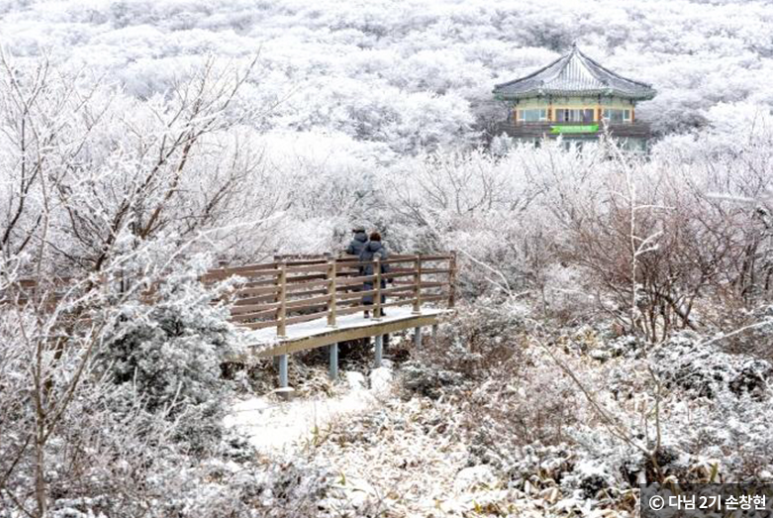 제주도 1100고지는 눈 내린 한라산을 가장 쉽게 즐길 수 있는 곳입니다. 차를 타고 1100도로를 따라 산 중턱가지 단숨에 오를 수 있기 때문입니다. 도로 양옆으로 크리스마스트리 장식처럼 매달린 눈꽃이 보기에도 탐스럽습니다. 1100 고지에 오르면 한라산 설경은 절정에 달합니다. 하얗게 피어난 상고대의 풍경은 흡사 '겨울왕국'을 연상케 합니다. 설경은 좀 더 가까이서 즐기고 싶다면 1100고지습지로 가면 좋을 것 같습니다. 설경은 좀 더 가까이서 즐기고 싶다면 1100고지습지로 가보세요. 성인 기준 약 15분~20분 소요되는 짧은 탐방로가 있어 부담 없이 걷기 좋고, 상고대 가까이서 인생 사진도 남길 수 있습니다.