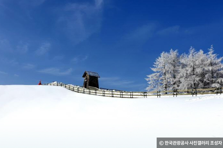 대관령양떼목장은 해발 약 900m의 넓은 초지 위에서 양들이 자유롭게 뛰노는 공간입니다. 봄과 여름에는 광활하고 푸른 초원이, 겨울에는 순백의 설경이 병풍처럼 펼쳐져 한 폭의 그림 같은 풍경을 자랑합니다. 눈 쌓인 나무 아래나 산책로 곳곳에 있는 오두막, 탁 트인 하늘과 목장 전경을 볼 수 있는 정상부에서 사진을 찍어보는 것도 좋습니다. 밝은 원색의 옷이나 모자, 목도리 등을 착용한다면, 하얀 눈과 옷의 색상이 대비를 이루어 더욱 멋진 사진을 찍을 수 있습니다.