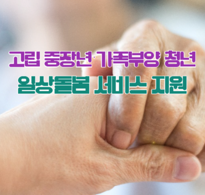 오늘은 고립 중장년과 가족부양 청년들에게 일상돌봄 서비스를 지원한다고 합니다. 자세한 정보 알아보겠습니다.