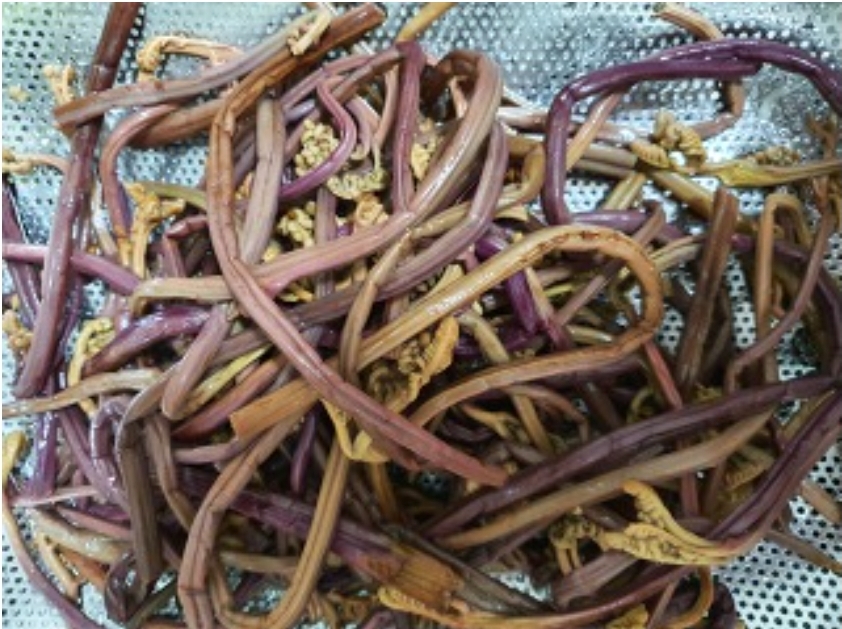 데친 고사리를 건조시켜서 보관하는데, 이 과정에서 식이섬유가 30배 정도 증가하게 된다고 합니다. 말린 고사리는 끓는물에 3분에서 4분 데치고 물에 반나절 정도 불리면 오동통한 본연의 맛을 즐길 수 있다고 합니다.