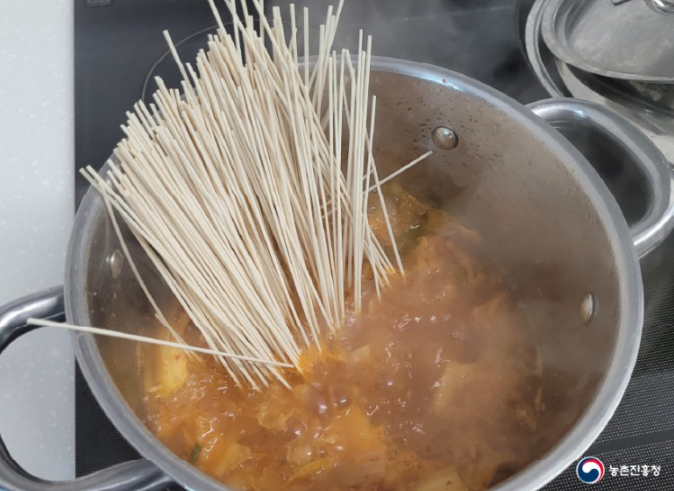 오늘은 곤충식 별미 '고소애 김치털랭이국수' 만드는 방법을 소개해 드리겠습니다.