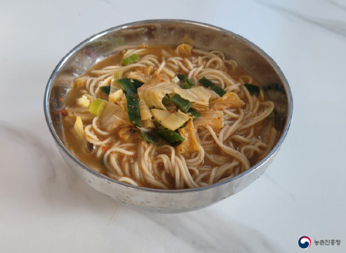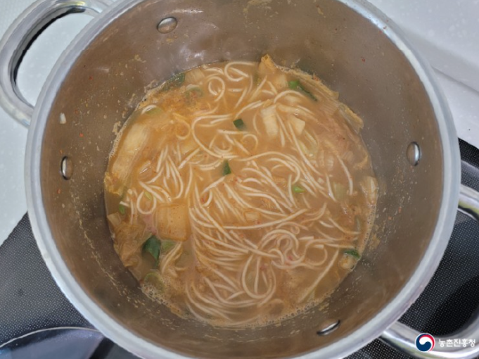 오늘은 곤충식 별미 '고소애 김치털랭이국수' 만드는 방법을 소개해 드리겠습니다.