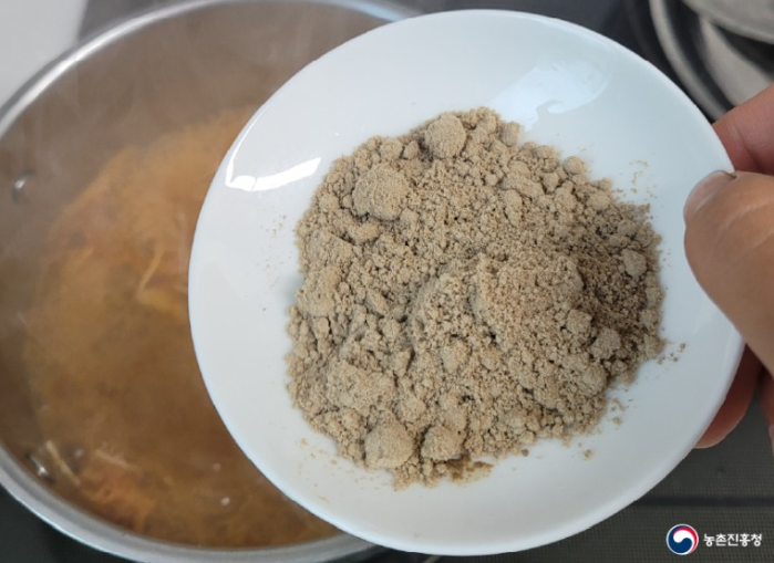 후각을 자극하는 고소애의 향기가 국수의 풍미를 한층 더 깊게 만들어줍니다.