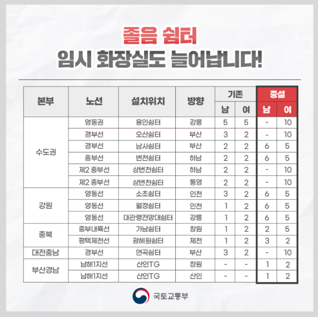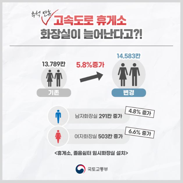 추석 연휴 고속도로 휴게소 화장실 늘어난다!