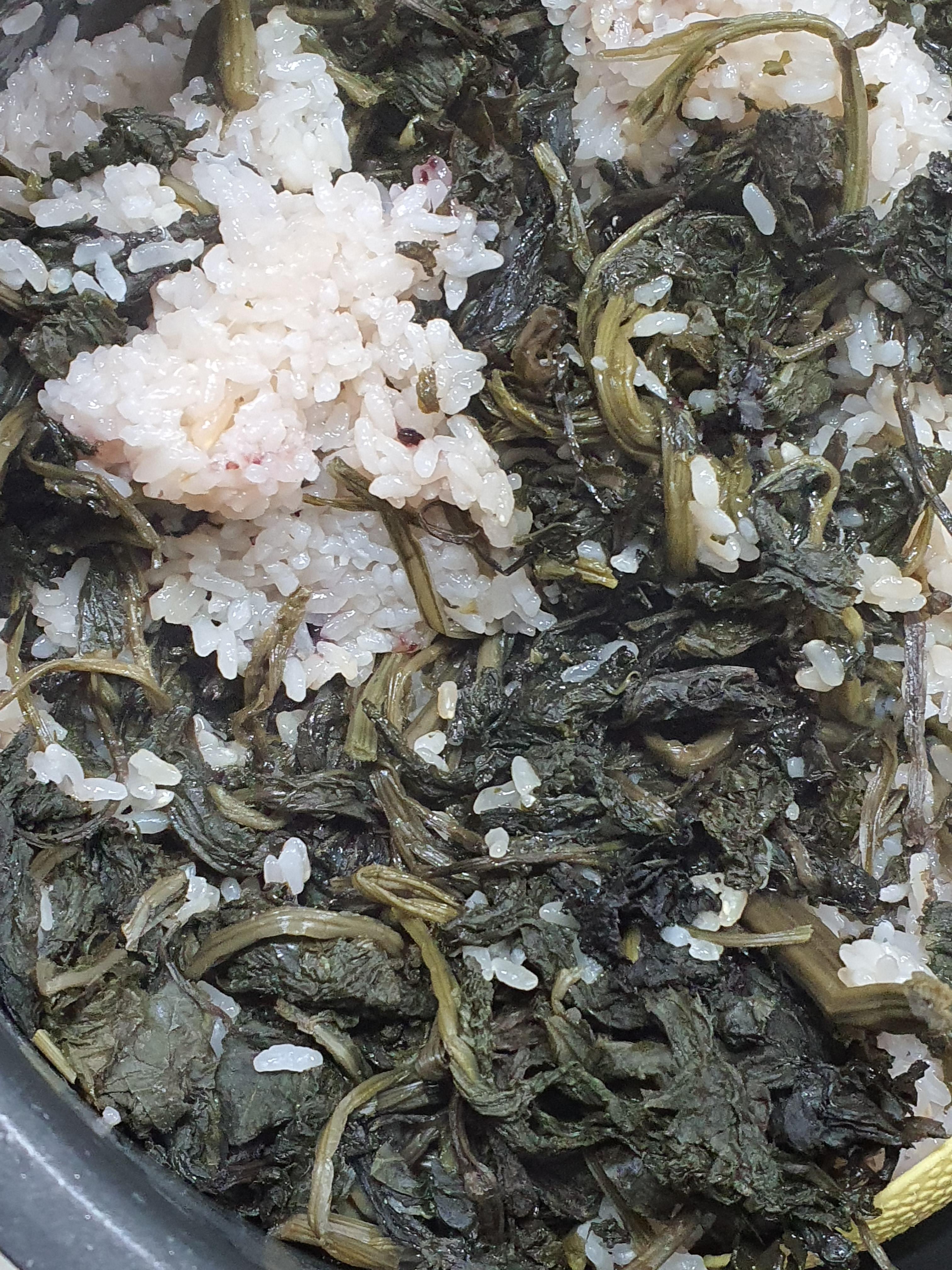 이렇게 잘 씻어진 곤드레는 흰쌀과 찹쌀을 1 : 1로 넣어 밥을 한답니다.