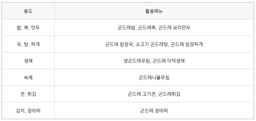 곤드레밥, 나물, 국 등 한식에 널리 활용