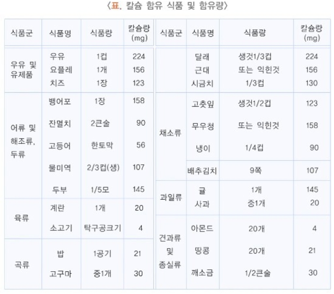 일생동안 적절한 양의 칼슘 섭취는 최대 골량의 취득과 건강한 뼈를 유지하는 데 필요하다고 합니다.