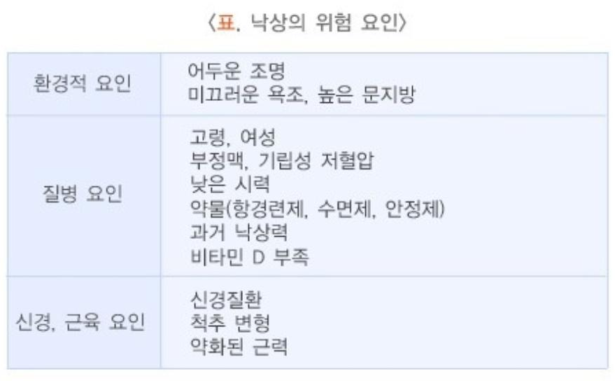 골절의 발생 기전에서 나타난 것처럼 낙상은 골절 발생의 중요한 요인이라고 합니다.