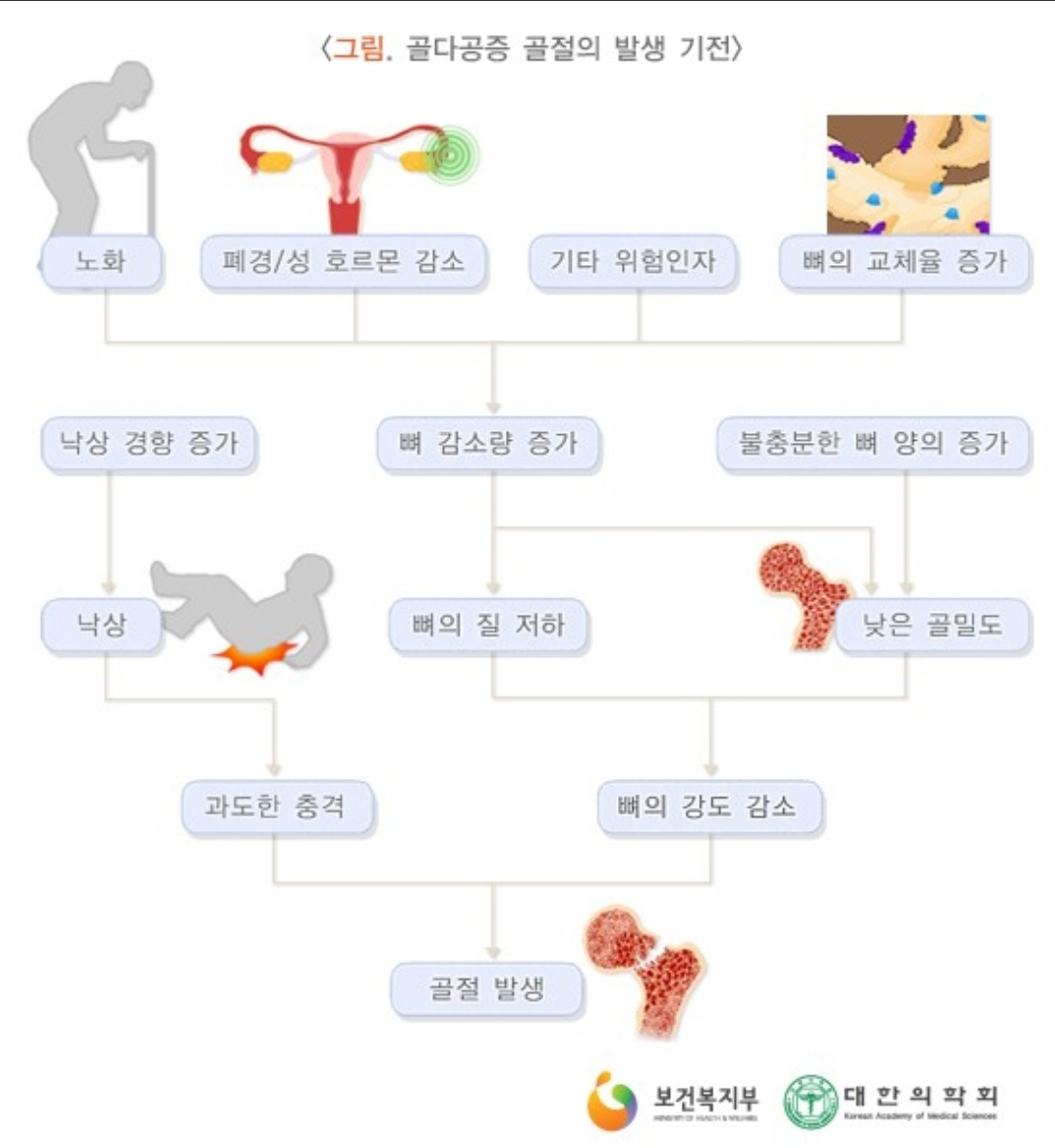 이와 같이 골다공증 발생은 다양한 원인을 가지고 있다고 합니다.