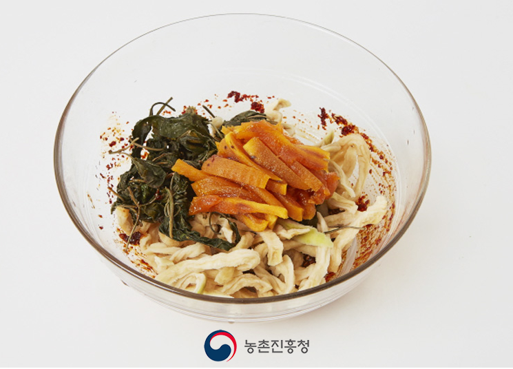 무말랭이(1/2 캅), 마른 고춧잎(1/4컵), 곶감(2개)