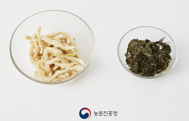 무말랭이(1/2 캅), 마른 고춧잎(1/4컵), 곶감(2개)