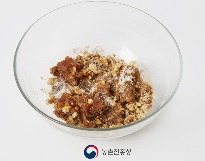4. 호두와 곶감은 굵게 다진 뒤 나머지 호떡소와 섞어줍니다.