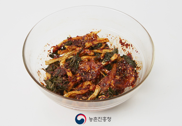 설탕 1큰술, 고춧가루 4큰술, 까나리액젓 1큰술, 고추장 1큰술, 매실액 2큰술, 다진 마늘 1큰술, 부순 참깨 1큰술, 참기름 2큰술