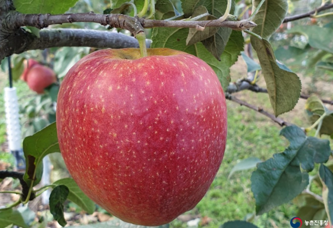 지난해 유통인 대상 시장성 평가 결과, 비슷한 시기 수확하는 '홍로'보다 모양, 당도, 당도와 산도 비율면에서 경쟁력이 높다는 평가를 받았다고 합니다.