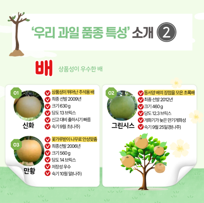 오늘은 농촌진흥청에서 소개하는 과일 묘목(우리 과일 품종 특성)을 소개해 드리겠습니다.