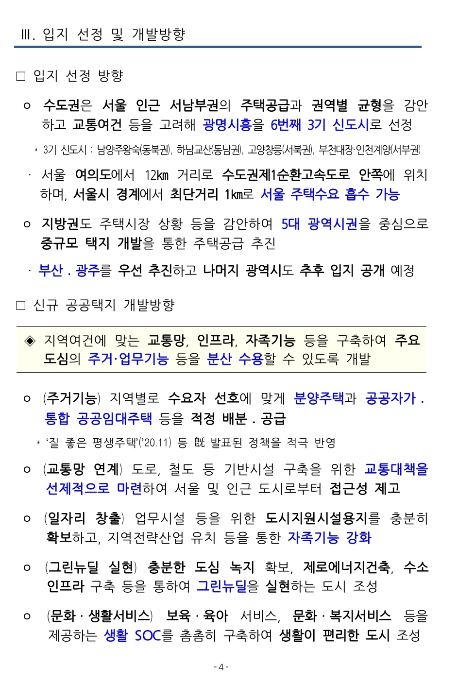 대도시권 주택공급 확대를 위한 신규 공공택지 추진계획