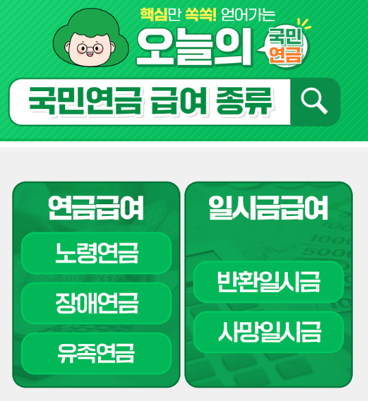 오늘은 국민연금 급여의 다양한 종류를 알아보겠습니다.