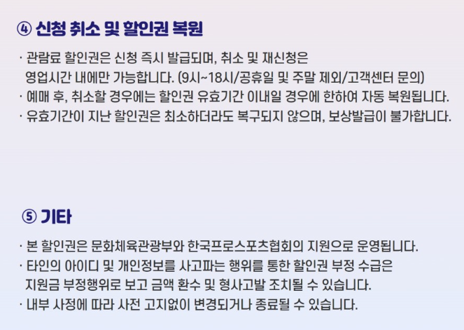 마지막으로 '신청 취소 및 할인권 복원'과 '기타 사항'까지 모두 숙지하셔야 합니다.