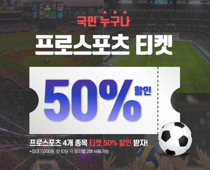 대한민국 국민이라면, 누구나 프로스포츠 티켓 반값 할인! 프로스포츠 4개 종목 50% 할인받자!