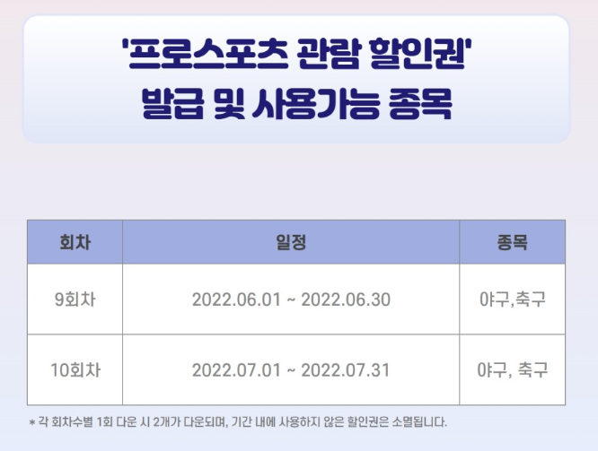 프로스포츠 관람 할인권 발급 및 사용가능 종목