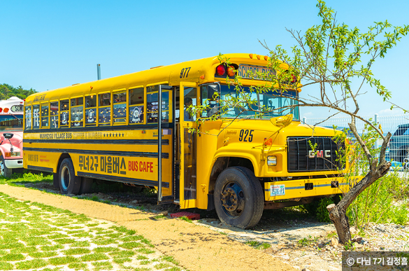 무녀2구마을버스는 선유도에 가는 길목에 위치한 무녀2구 마을의 이색카페입니다. 미국에서 들여온 스쿨버스 한 대가 전부였던 이곳은 현재 잔디밭과 탁 트인 전망을 가진 2층짜리 건물, 그리고 각기 다른 느낌을 가진 특이한 버스들로 채워졌습니다. 버스들은 독특한 포토존이자 테이블이 설치된 카페 공간으로도 활용되고 있어 취항에 따라 골라 탈 수 있습니다. 이곳에서만 맛볼 수 있는 수제버거를 맛보며 버스 창문을 통해 바다를 감상해 보세요.