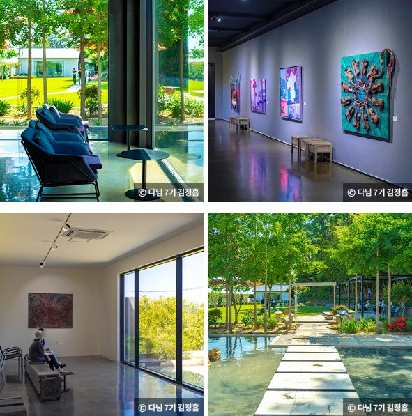 공감선유는 자연 그대로의 지형을 활용해 건축한 곳으로 미술 작품과 음료를 함께 즐길 수 있는 갤러리 카페입니다. 총 5개의 공간으로 나뉜 이곳은 작품과 큰 창 너머로 보이는 풍경이 각기 달라 취향에 맞는 공간에서 휴식을 취할 수 있습니다. 또한, 외부에는 소나무 숲 정원과 넓은 들이 있어 산책을 하며 아름다운 자연까지 즐길 수 있습니다. 문화 예술과 휴식을 한 번에 즐길 수 있는 이곳에 방문해 보세요.