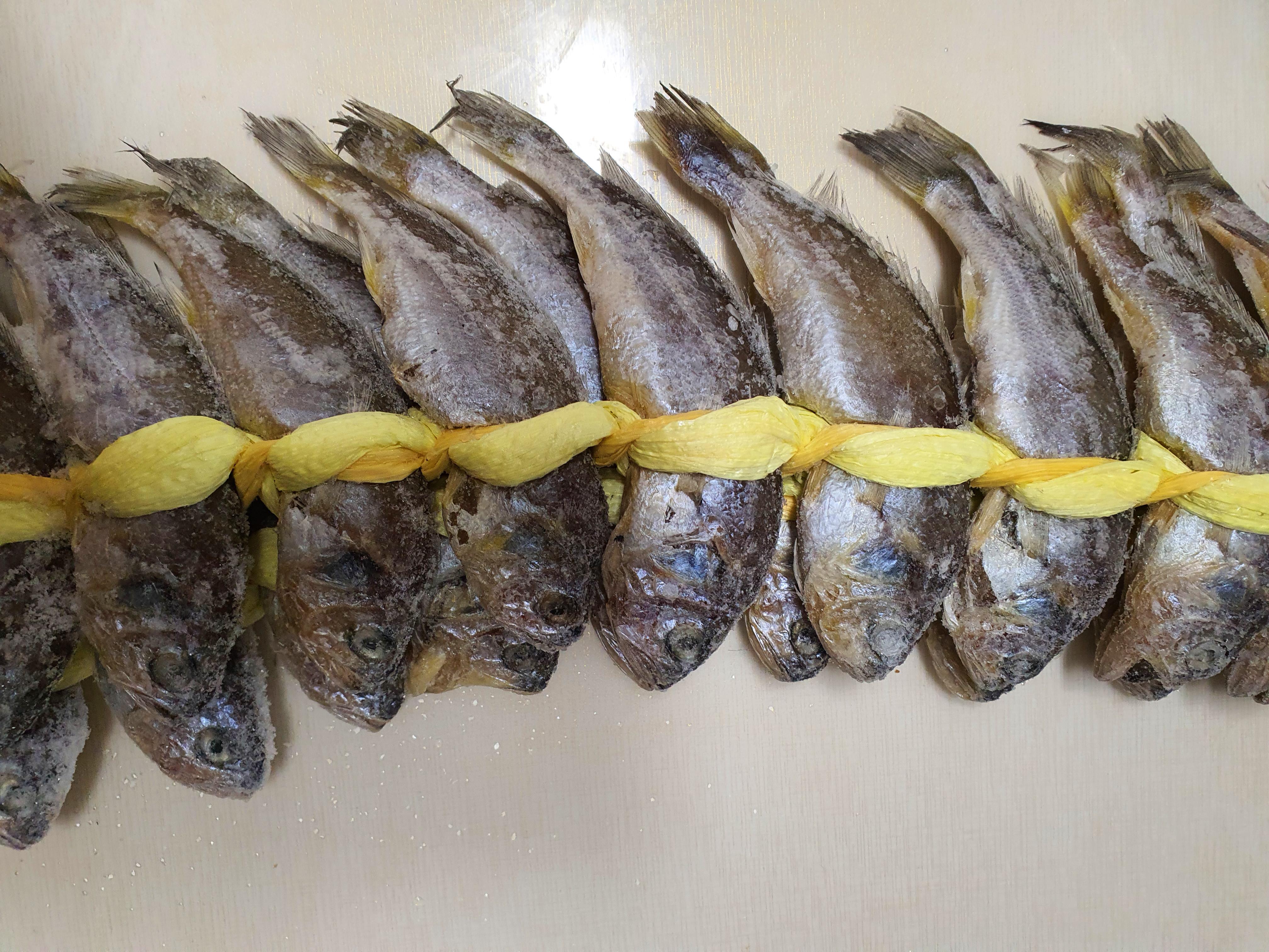 그 다음 절인 조기를 꺼내어 보에 싸서 하루쯤 눌러 놓았다가 채반에 널어 빳빳해질 때까지 말린다고 합니다.
