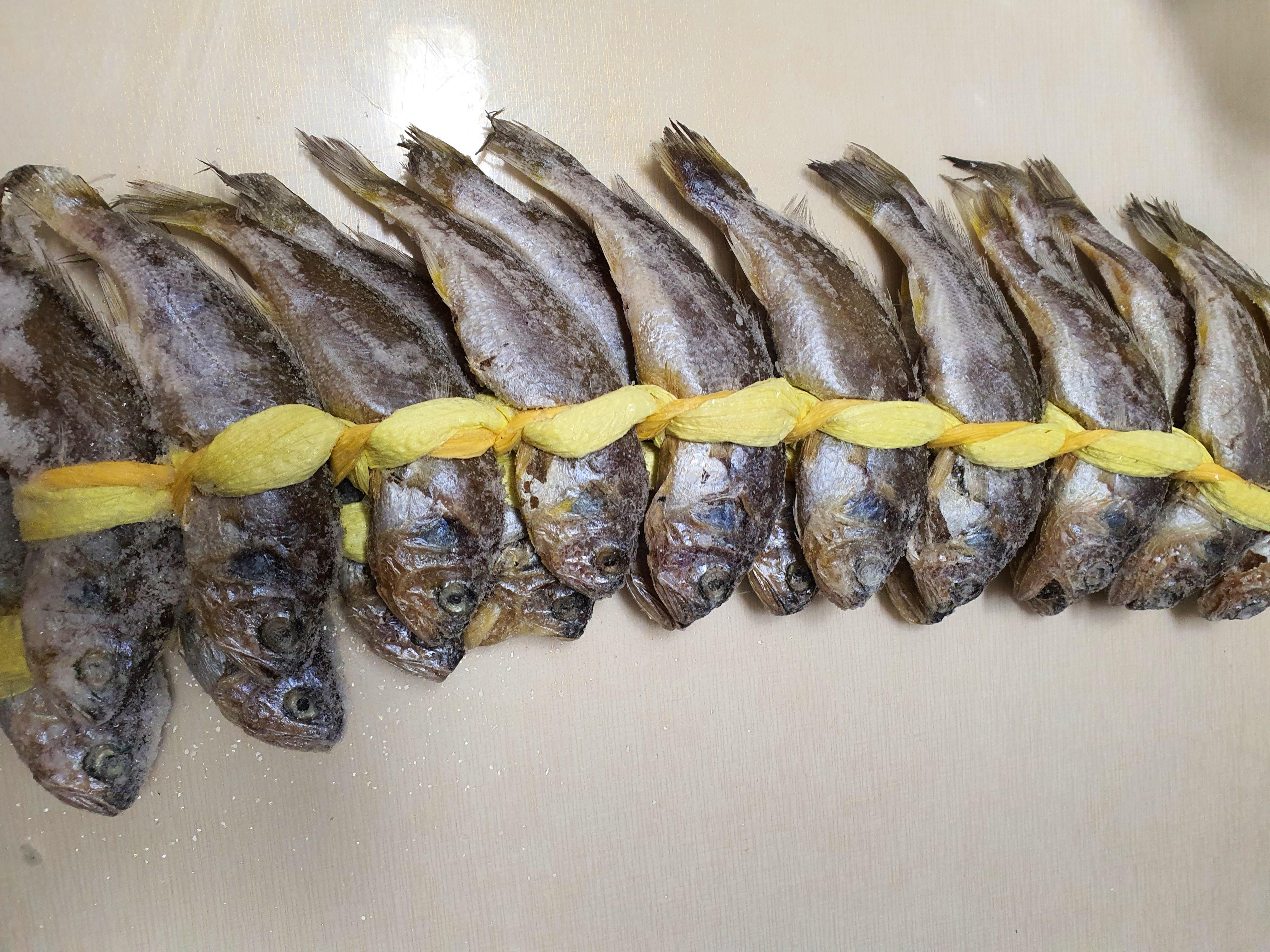 그 다음 절인 조기를 꺼내어 보에 싸서 하루쯤 눌러 놓았다가 채반에 널어 빳빳해질 때까지 말린다고 합니다.