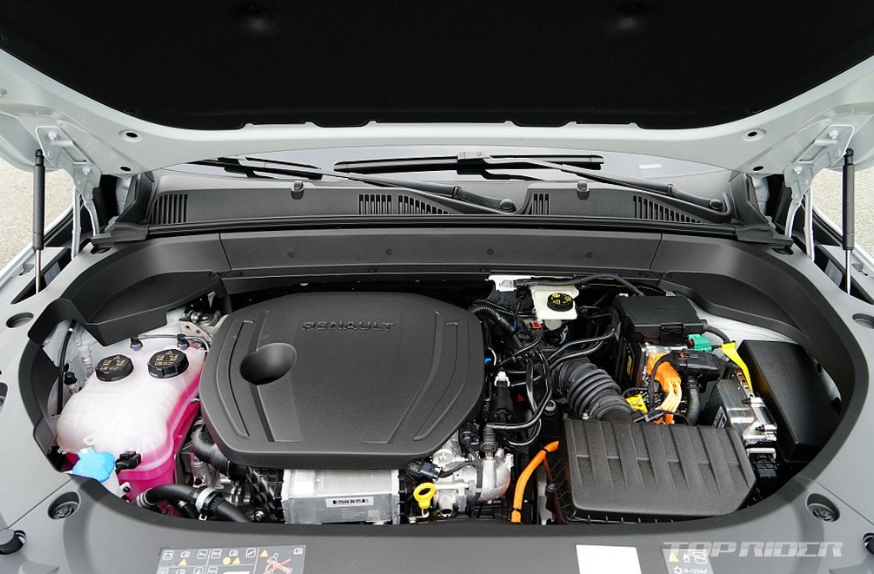 그랑 콜레오스 하이비르드에는 1.5리터 4기통 가솔린 터보엔진과 2개의 전기모터, 그리고 멀티모드 오토 3단 전용 변속기가 조합됩니다. 엔진 144마력(5500rpm), 최대토크 23.5kgm(2500-4000rpm), 전기모터 136마력, 32.6kgm, 복합연비 15.0km/ℓ(도심 14.8, 고속 15.2)입니다.